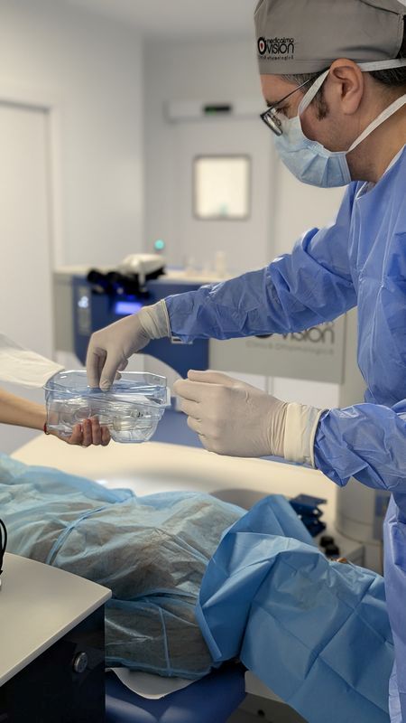 Chirurgia cristalinului în scop refractiv se realizează în două etape complementare. În prima etapă, intervenția începe cu realizarea unor microincizii extrem de precise cu ajutorul laserului cu femtosecunde, ceea ce permite o intervenție controlată și favorizează o vindecare rapidă. În etapa următoare, cristalinul natural este înlocuit cu un cristalin artificial, cel mai frecvent multifocal, ales astfel încât pacientul să poată obține o vedere clară la distanță, la intermediar și la aproape.